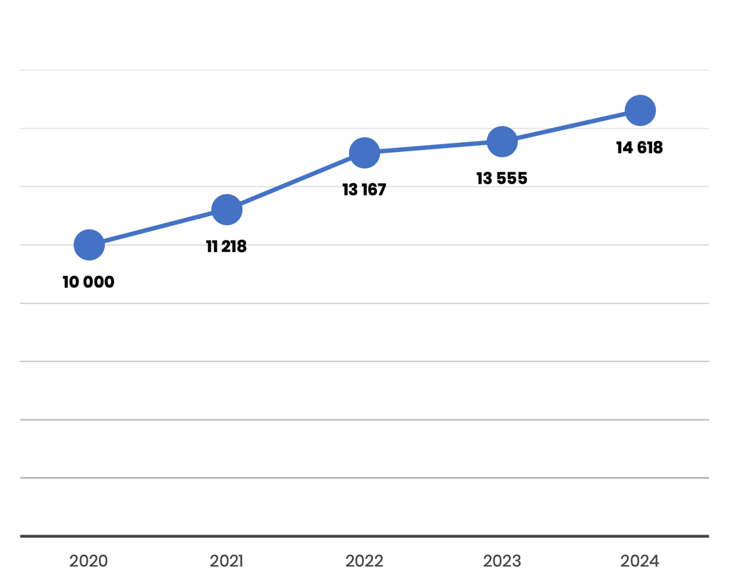 2024-ben a foglalkoztatottak száma 3 561 főre nőtt, ami mindössze 2,7%-os bővülést jelent az előző évhez képest. Ez jóval visszafogottabb dinamika, mint a korábbi időszakban, amikor 2021 és 2023 között évi 8–10%-os növekedés volt jellemző.