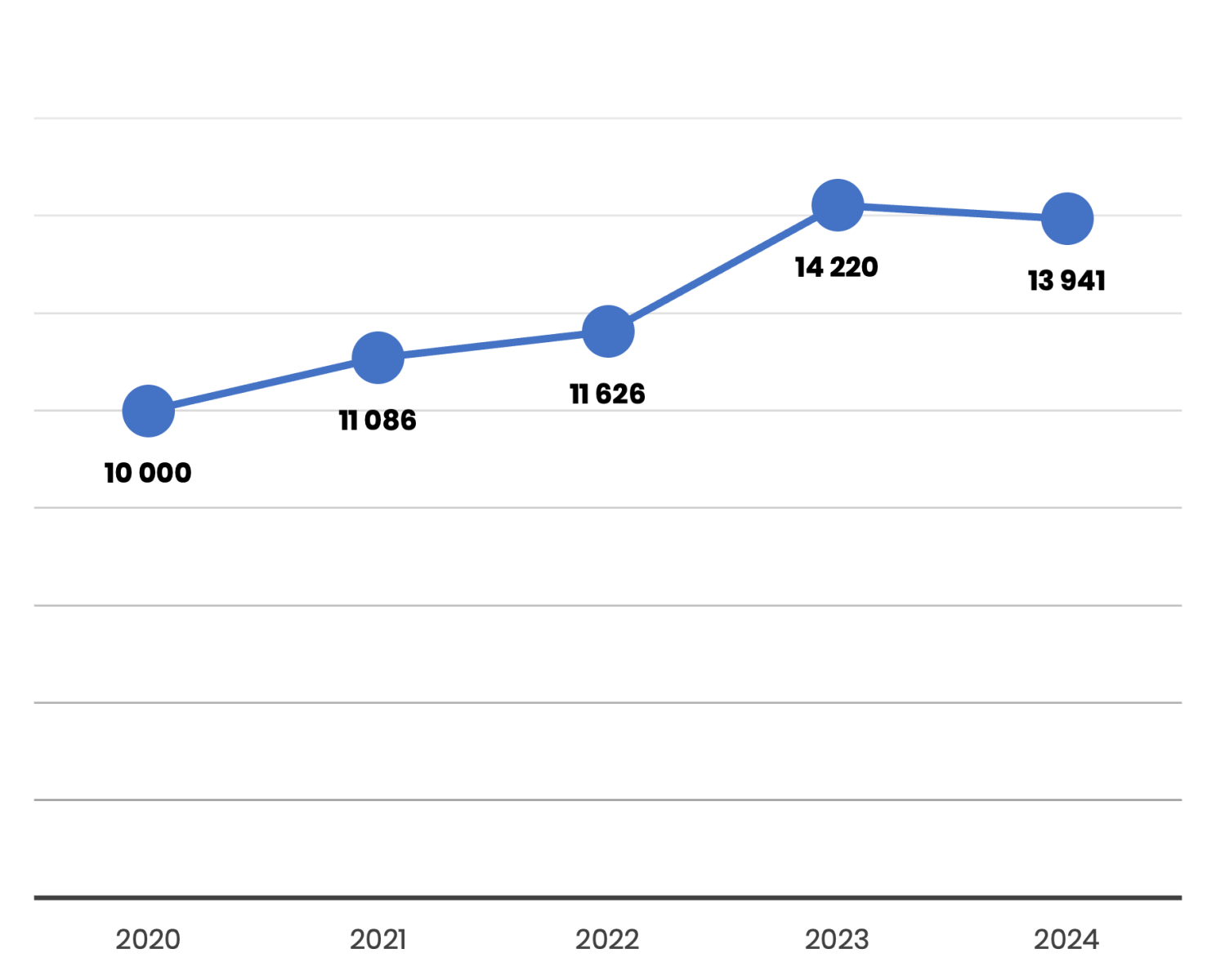 A piackutatási szektorban 2024-ben a foglalkoztatottak száma 7,1%-kal emelkedett, így 1 559 fő dolgozik a területen – ez a legmagasabb létszám az elmúlt öt évben. A munkaerő bővülésével párhuzamosan a személyi jellegű ráfordítások is látványosan ugrottak: 16,5 milliárd forintot tett ki a költség, ami több mint 20%-os emelkedést jelent egyetlen év alatt.