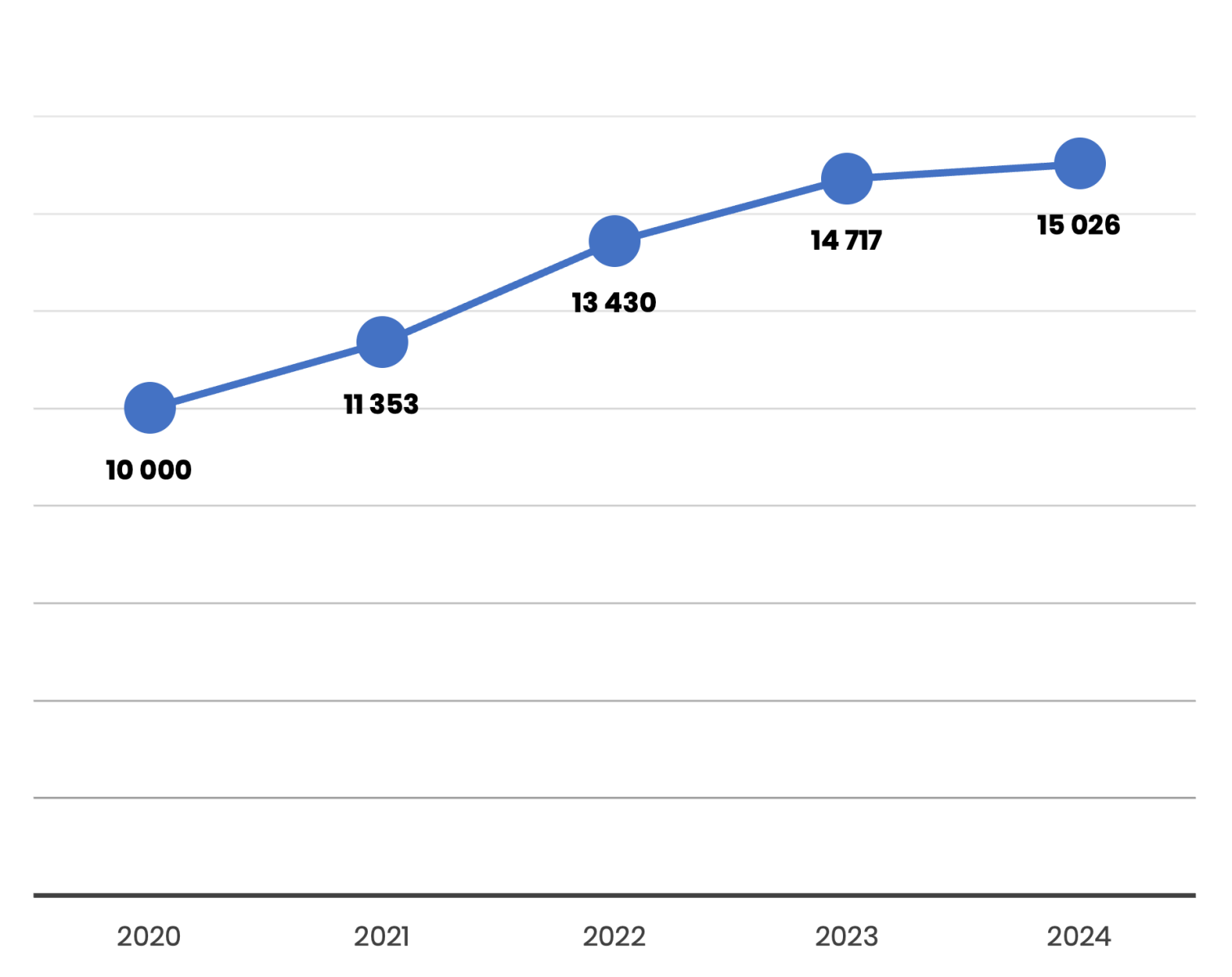 A PR-szektorban a foglalkoztatottak száma öt év alatt 845 főről 1477 főre nőtt, vagyis közel megduplázódott. Bár 2021-ben még 30% fölötti ugrást láthattunk, azóta a növekedés üteme mérséklődött, 2024-ben már „csak” 5,2%-os bővülést mértek. Ez arra utal, hogy a piac most inkább stabilizálódik, mintsem újabb nagy hullámot vesz.